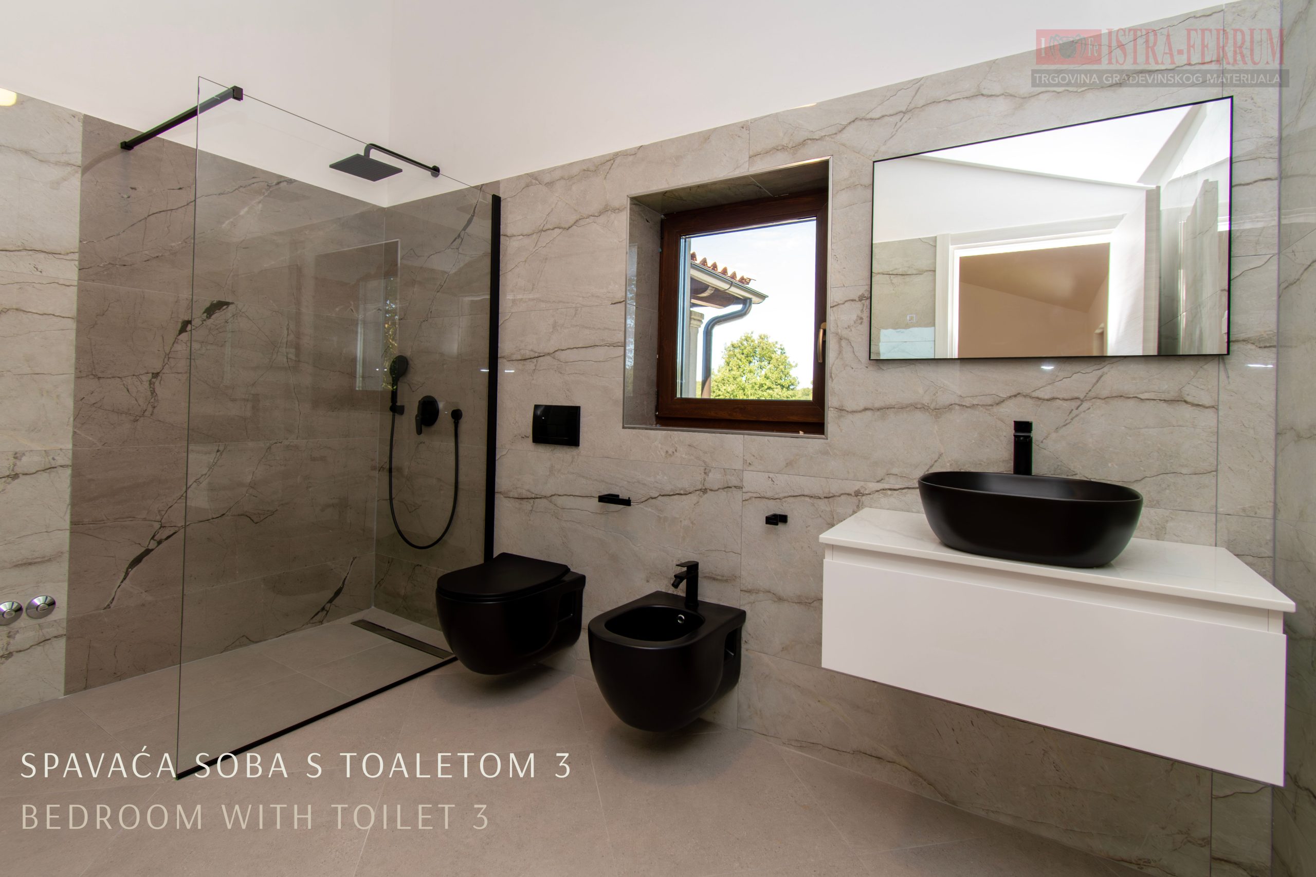 Ukupno: 4 spavaće sobe, 6 kupaonica i 2 dodatna toaleta.