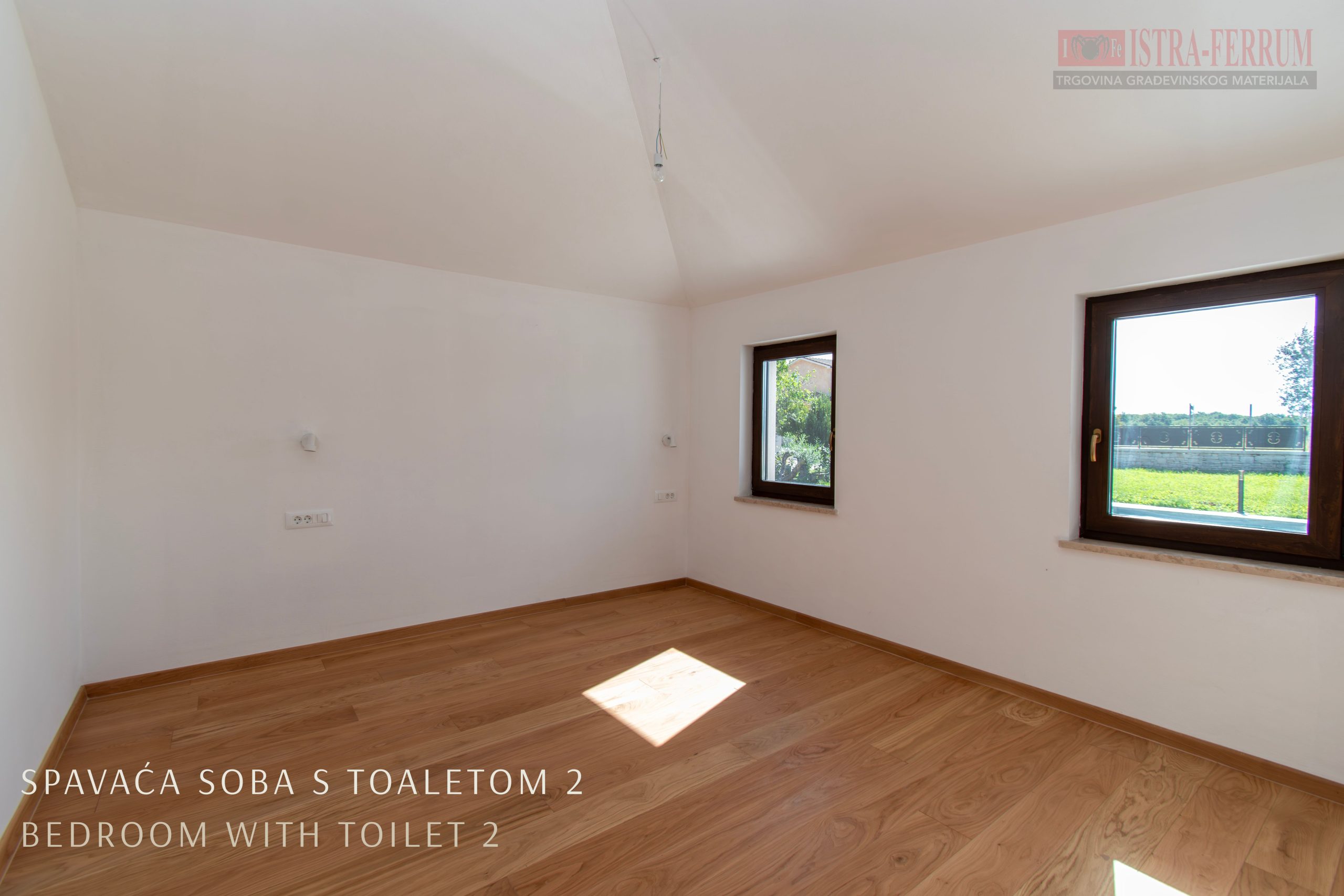 Novogradnja površine 123 m2 ističe se udobnim i funkcionalnim dizajnom s prostornom organizacijom koja omogućava lako kretanje i maksimalnu iskoristivost prostora. Sastoji se od ulaznog hodnika, prostranog dnevnog boravka otvorenog koncepta s kuhinjom i blagovaonicom, dviju spavaćih soba s vlastitim kupaonicama, dodatnog toaleta te spremišta unutar kuće. Iz dnevnog dijela izlazi se na natkrivenu terasu s ugodnim sjedećim prostorom, a u dvorištu se nalaze privatni bazen te pomoćni objekt s vanjskim WC-om, tušem i spremištem. Osiguran je privatni parking.
