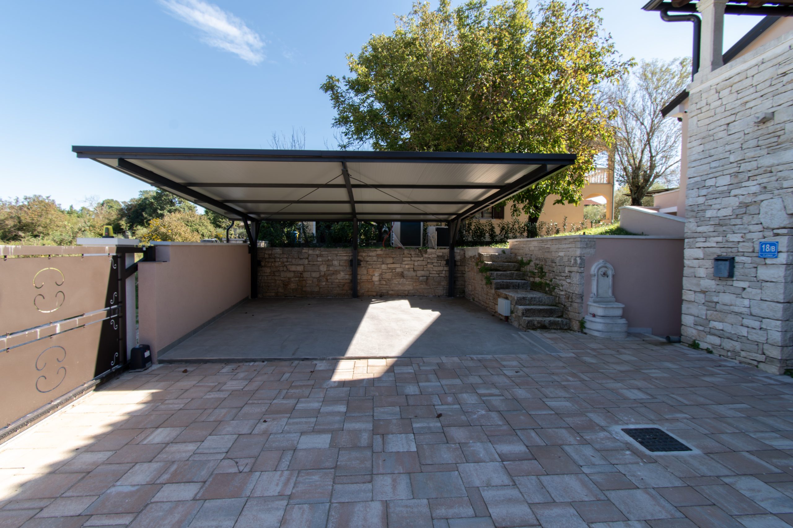 Dvorište s dva ulaza i 5 parkirnih mjesta (3 natkrivena)