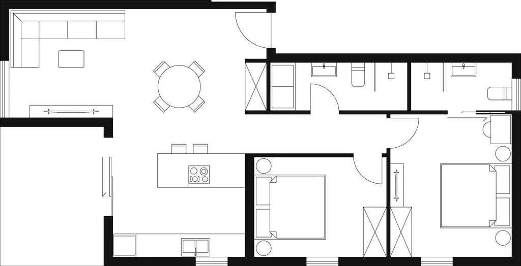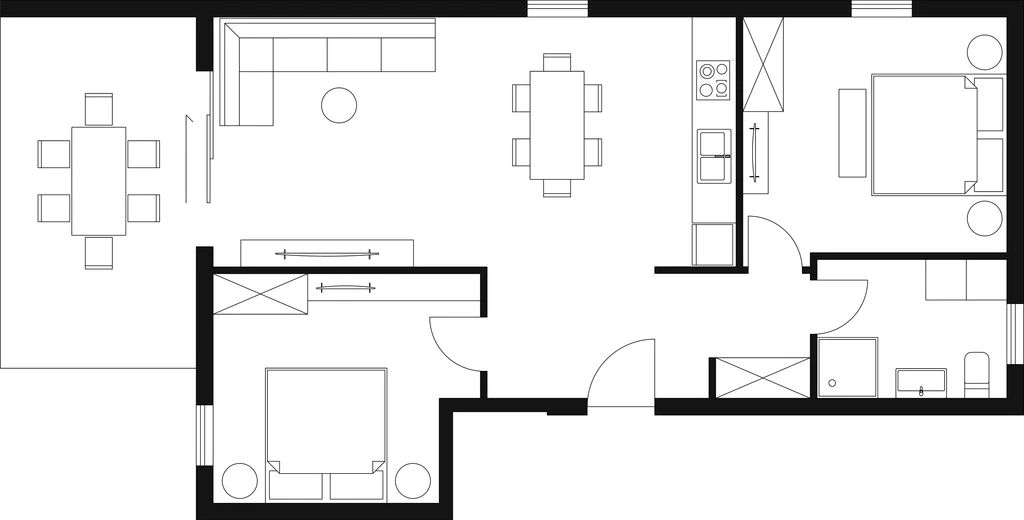 2 spavaće sobe (15,1 m² + 10,5 m²)
